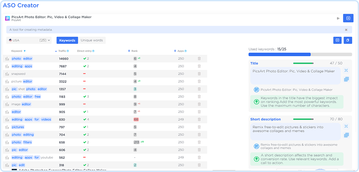 App Store Optimization Tools to help you find relevant keywords, prioritize search queries, and compose effective metadata