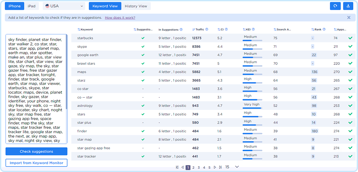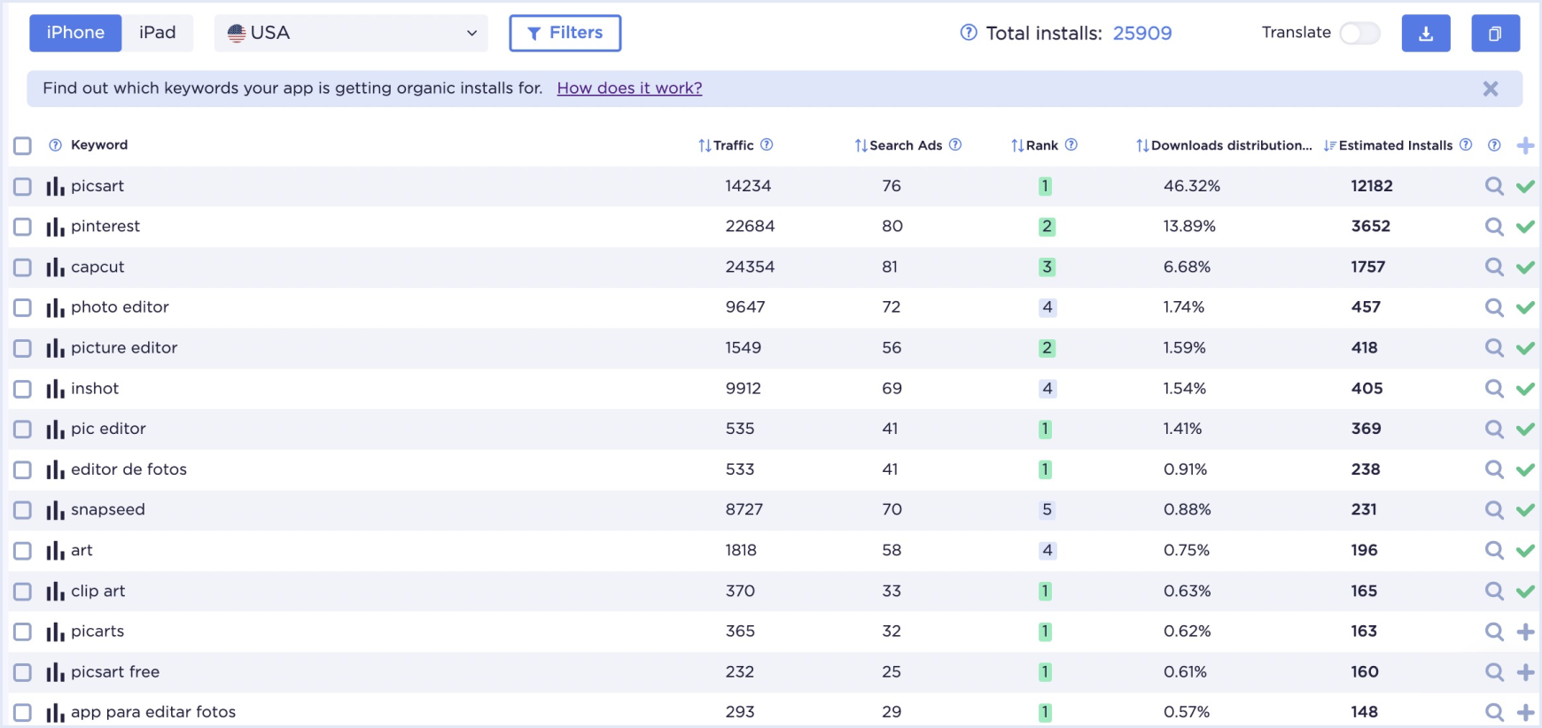 Find out which keywords your app is getting organic installs for.