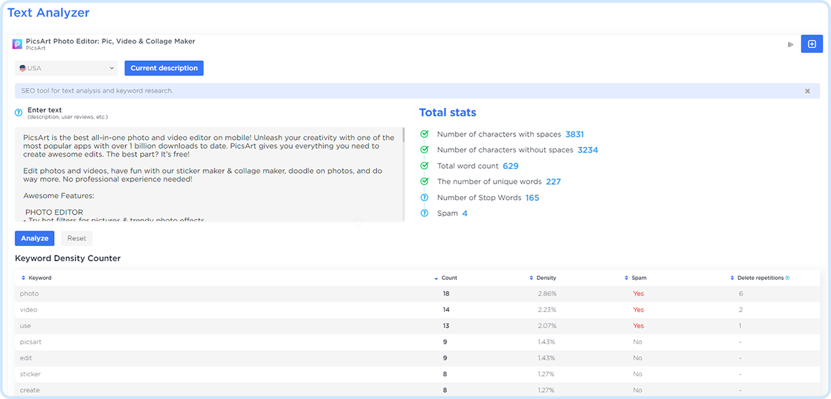SEO analysis of any text
