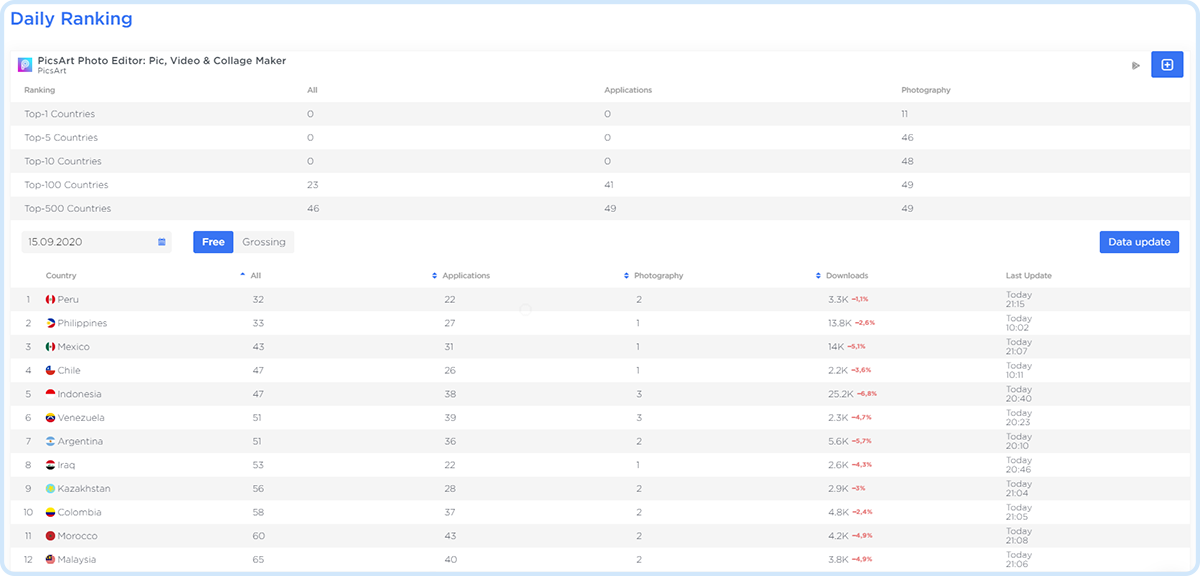 Track app ranking in all countries