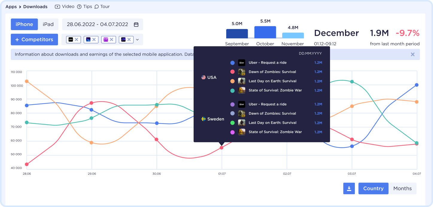 Compare your app downloads with competitors to find insights