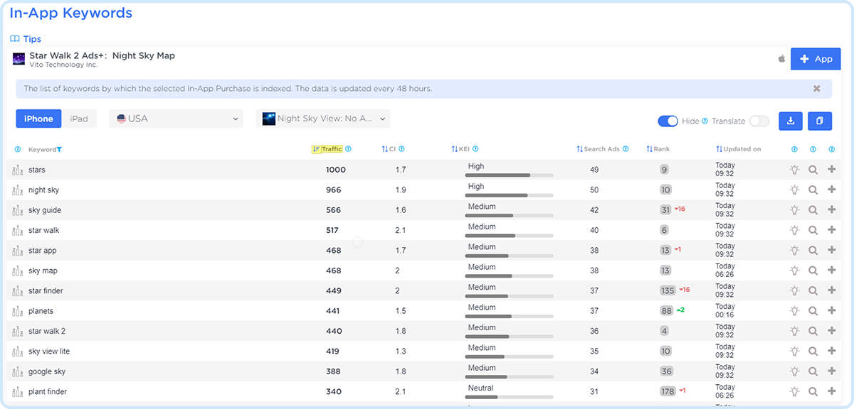 - Find out all the keywords by which your In-App purchases are indexed