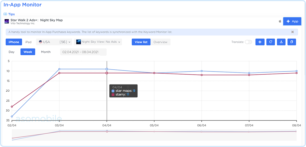 Track the position of the app by keywords