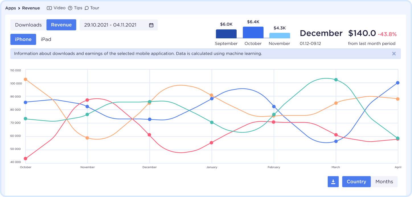- App downloads and revenue