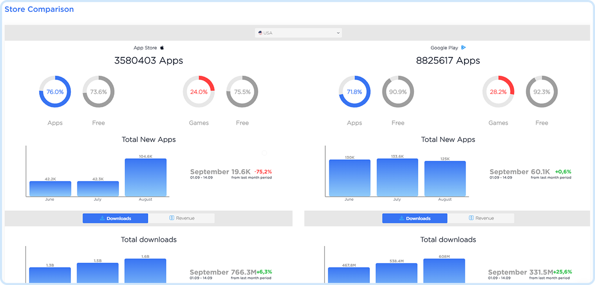 Compare your app downloads with competitors to find insights