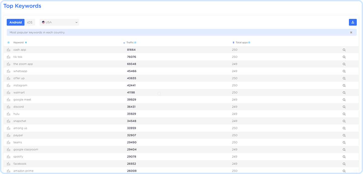 Analyze the most popular search queries on Google Play & App Store
