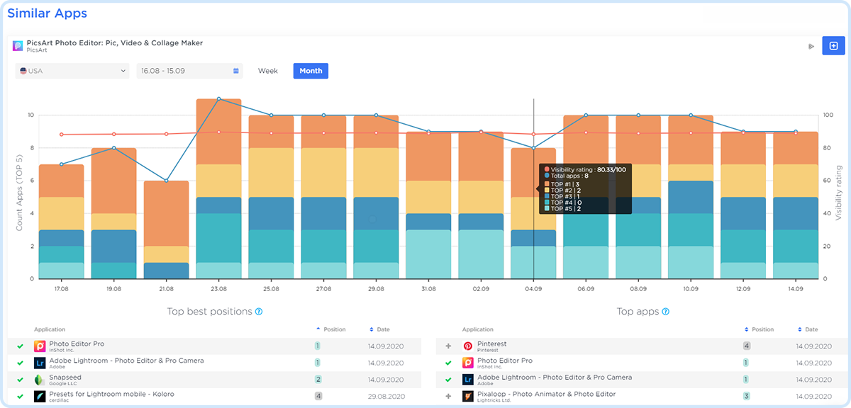 - App visibility score in similar apps collections